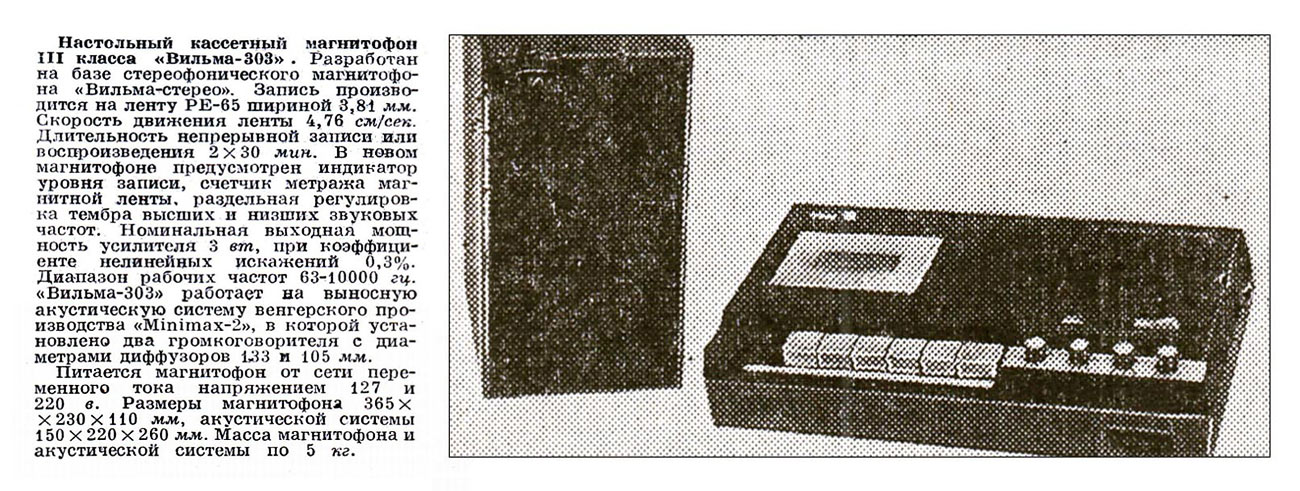 завод "Вильма". Магнитофон третьего класса ''Вильма-303'' разработан на