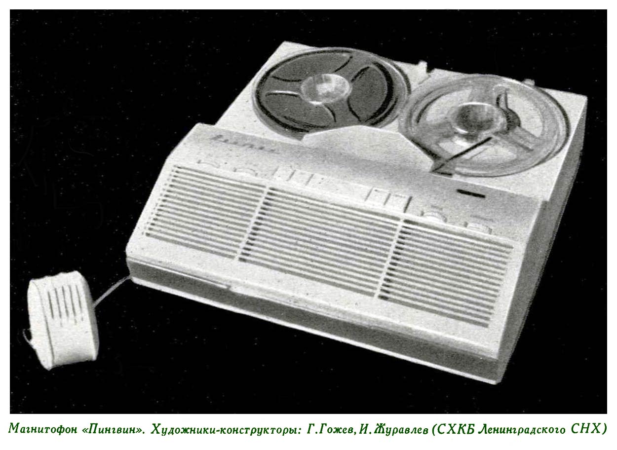 Носимый катушечный магнитофон "Пингвин" разработан в КБ завода им. Козицкого в 1965 году. Информация из журнала "Техническая эстетика" № 6 за 1965 год.