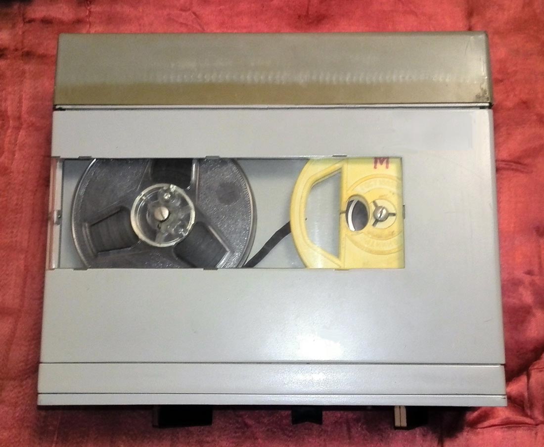 запись производится на магнитную ленту 6,25; скорость - 19 см/сек; магнитофон