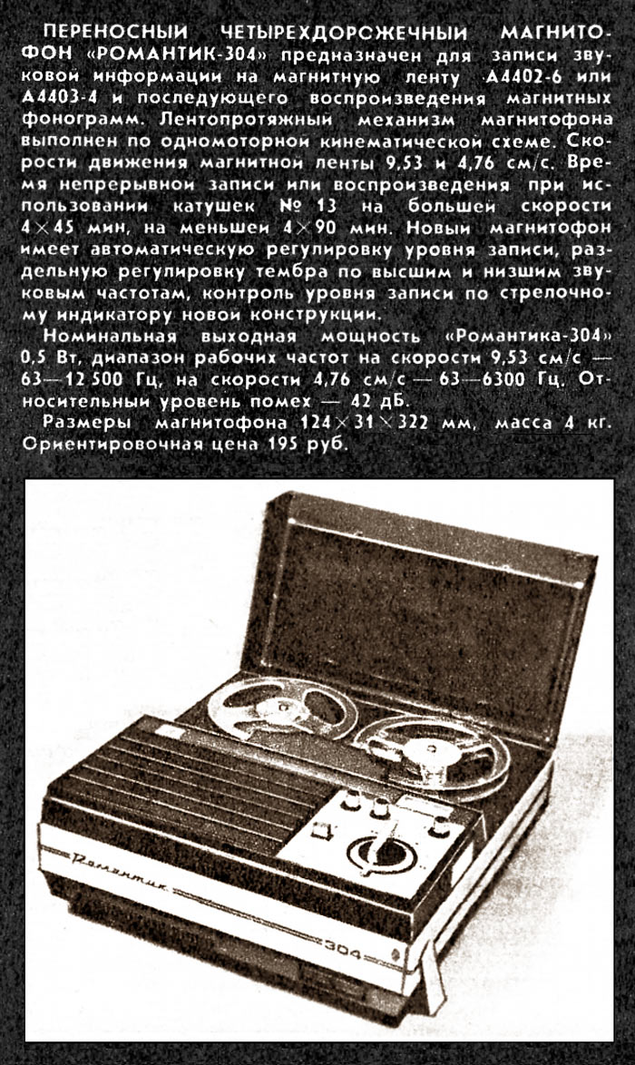 катушечный магнитофон "Романтик-304" с начала 1976 года выпускал Горьковский