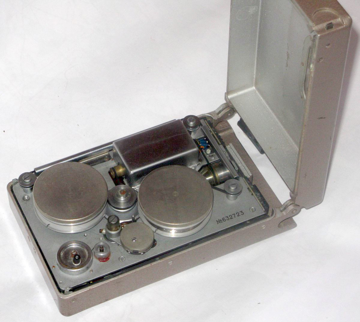Проволочный ламповый портативный магнитофон "Тритон" выпускался предположительно с 1962 года. Магнитофон предназначен для спецслужб КГБ СССР.