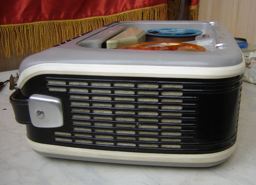 переносной магнитофон с универсальным питанием. Катушки вмещают 100 м.