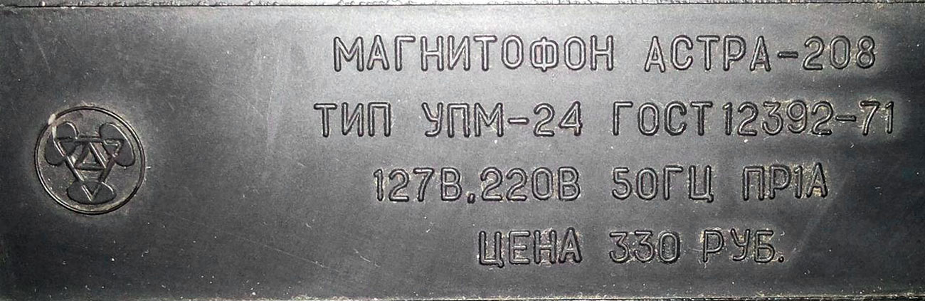 заводом "Техприбор". Магнитофон ''Астра-208-стерео'' был разработан в 1979
