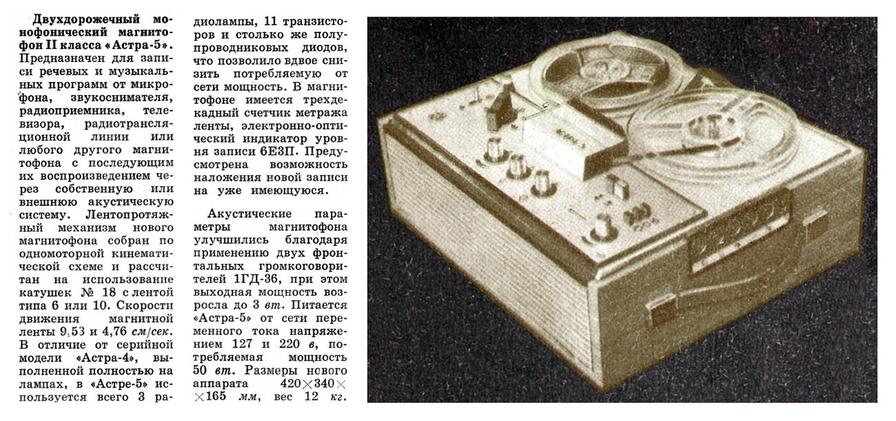 ленты: 9,53 и 4,76 см/сек. В отличие от модели ''Астра-4'' выполненной
