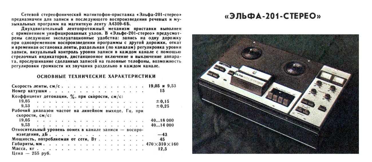 в 1981 года опытно выпустил Вильнюсский ЭТЗ "Эльфа". МП служит для записи
