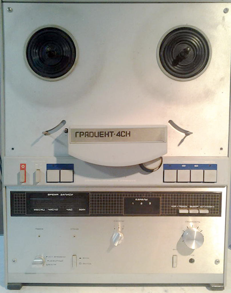 Диспетчерский магнитофон - регистратор, 4-х дорожечный, специального назначения "Градиент 4СН" выпускался предположительно с 1990 года Ростовским заводом "Прибор". Информации по магнитофону нет.