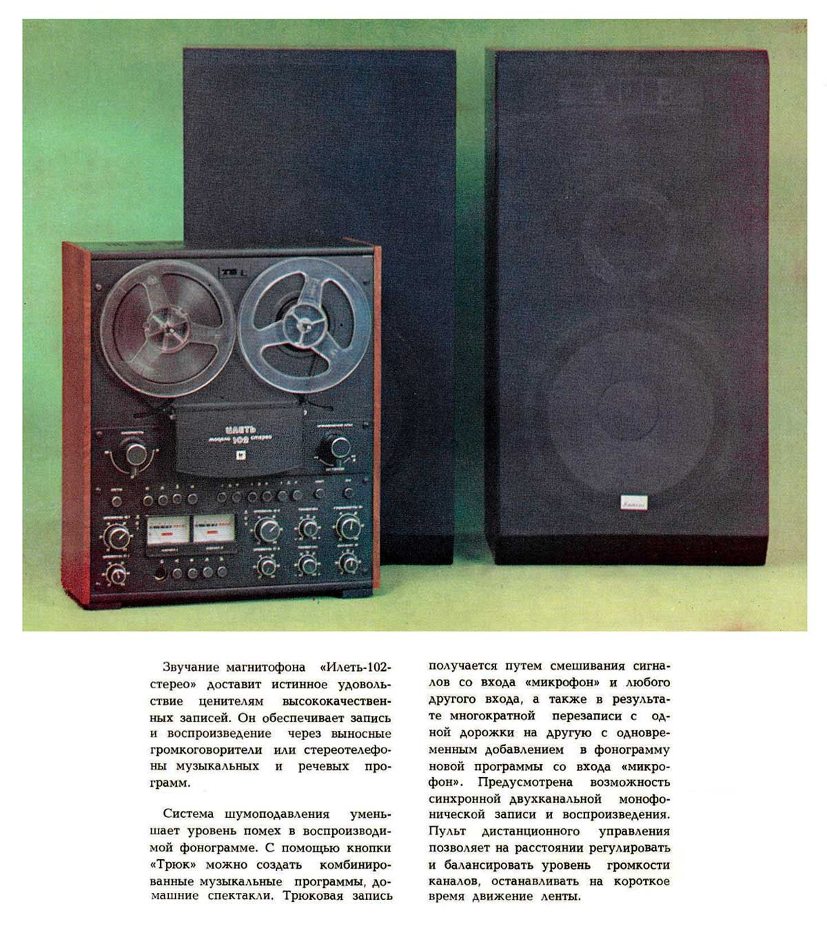 двухскоростной четырёхдорожечный магнитофон ''Илеть-102-1-стерео'' предназначен