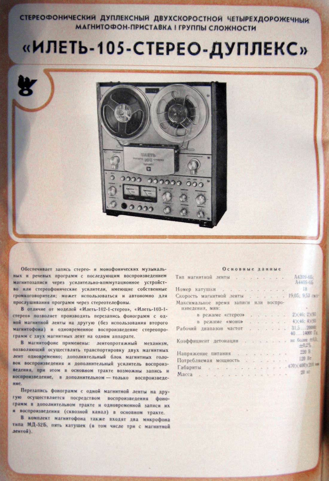 Стереофонический дуплексный 2-скоростной магнитофон-приставка "Илеть-105-стерео-дуплекс" подготовлен к выпуску в 1983 году Волжским ЭМЗ.