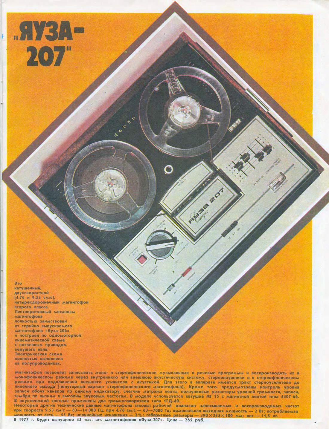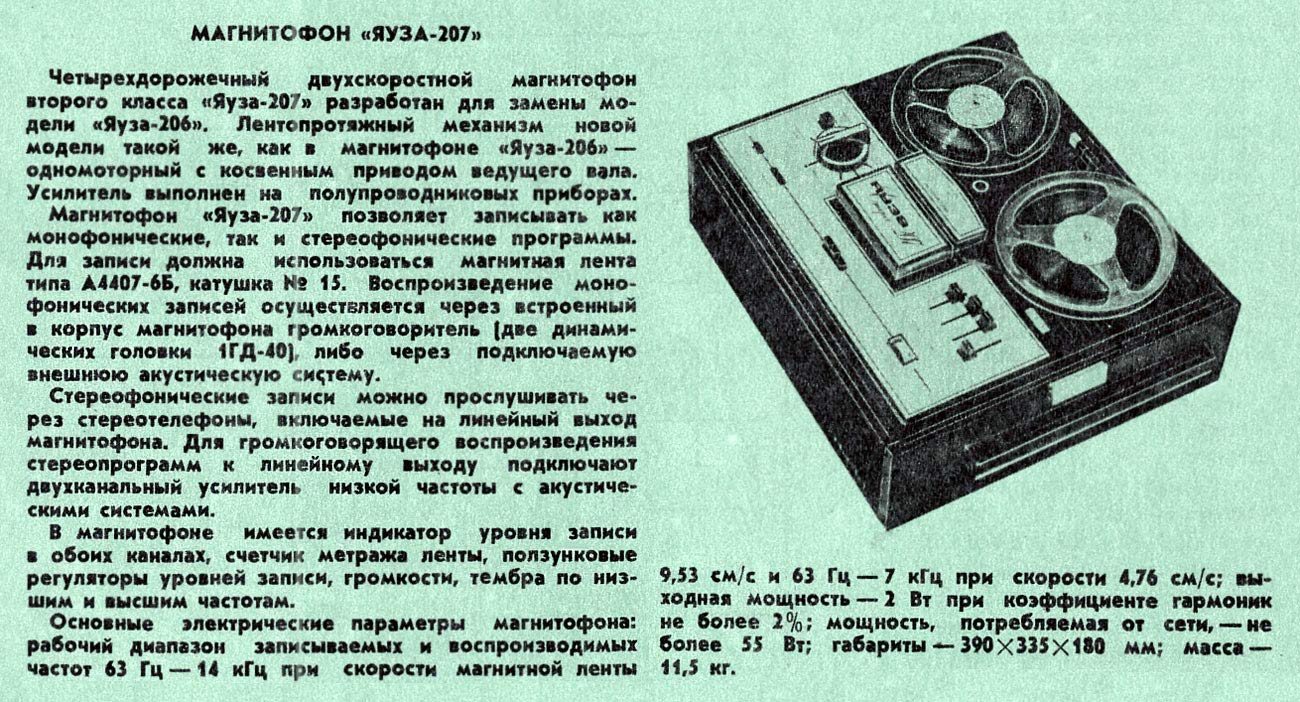 2-х скоростной магнитофон 2-го класса ''Яуза-207'' разработан для замены