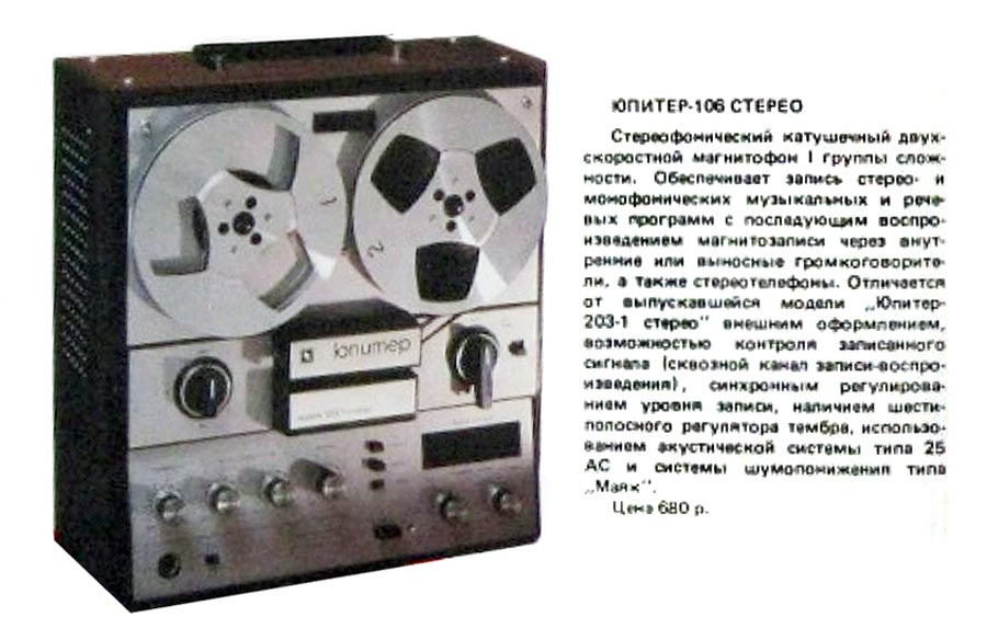 мм. Вес 14,2 кг. С 1992 года выпускался магнитофон "Юпитер МК-106С-1" не