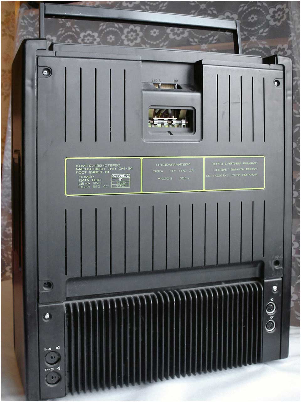 выходная мощность - 2х15 Вт. Потребляемая мощность - 170 Вт. Габариты магнитофона