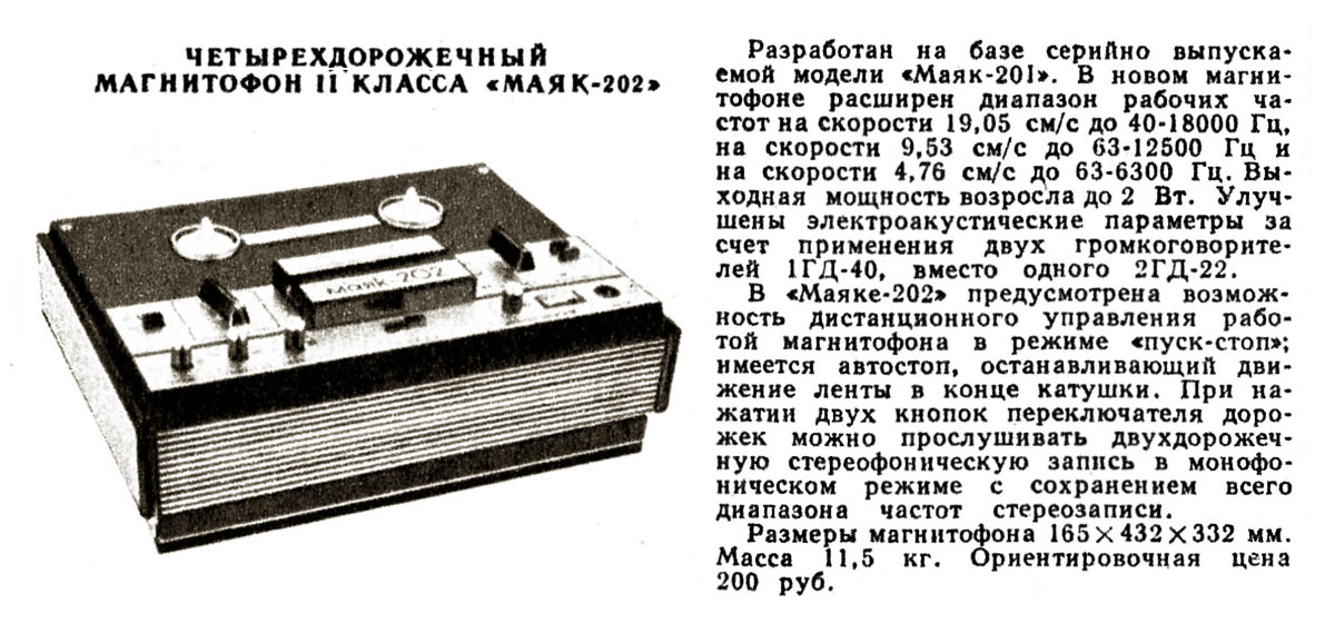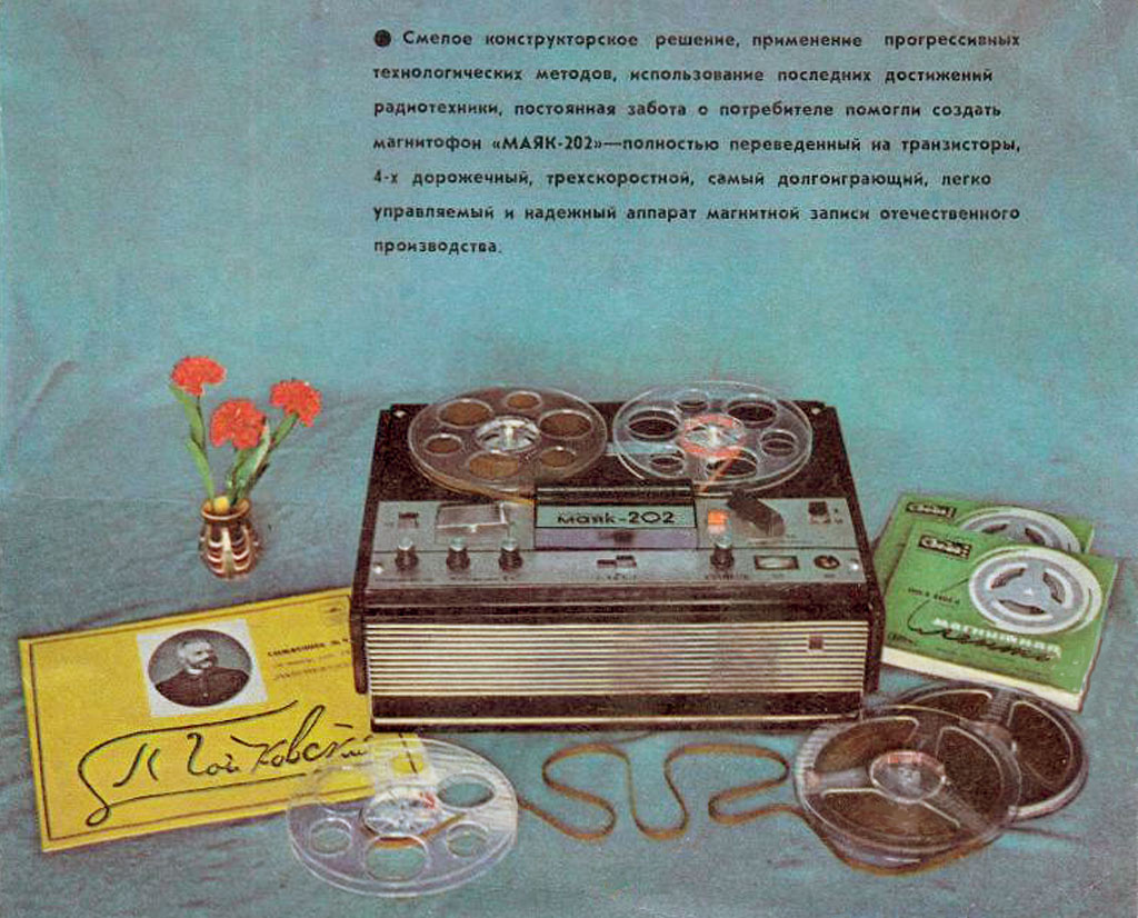 магнитофон "Маяк-202" с 1974 года выпускал Киевский завод "Маяк". Четырёхдорожечный