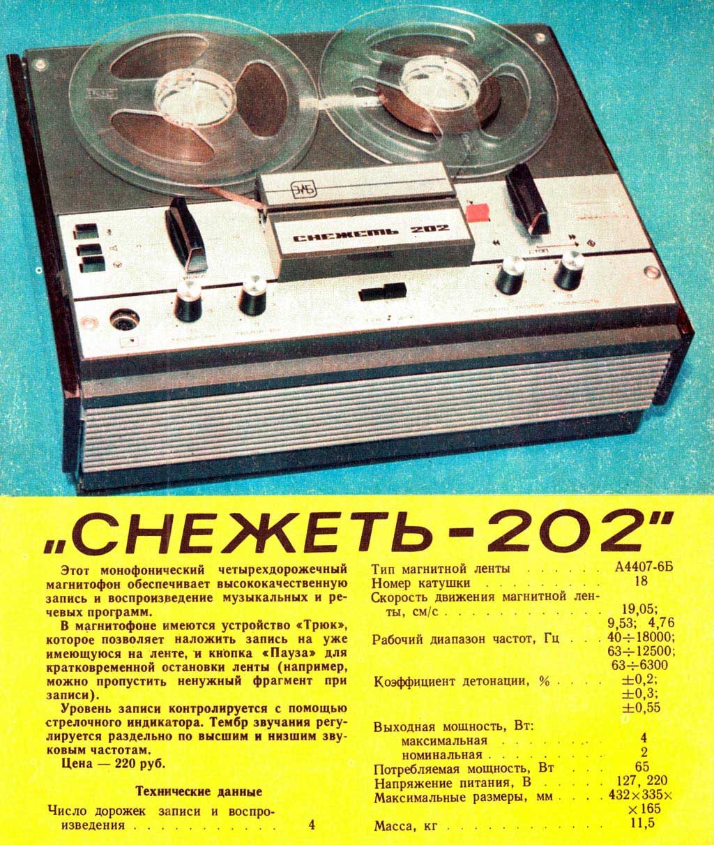 кг. Розничная цена магнитофона 220 рублей.