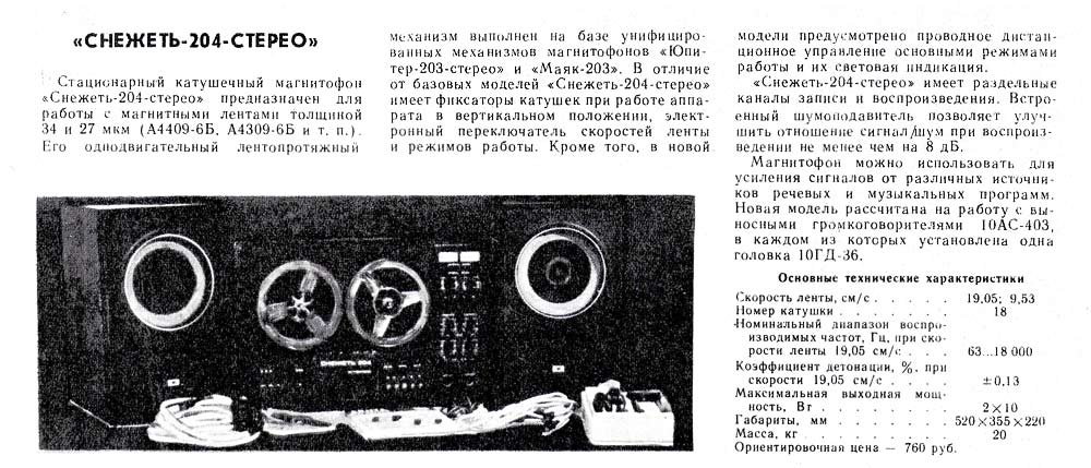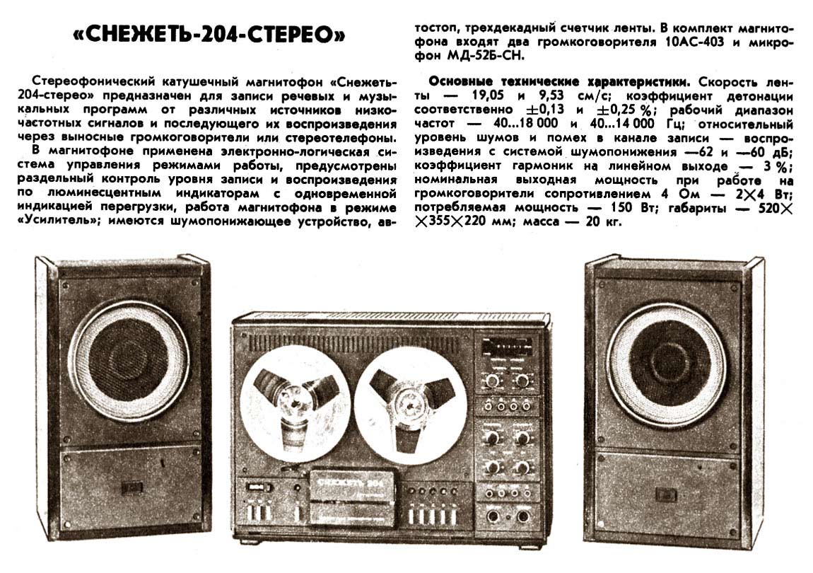 магнитофон "Снежеть-204-стерео" с 1981 года выпускал Брянский электромеханический