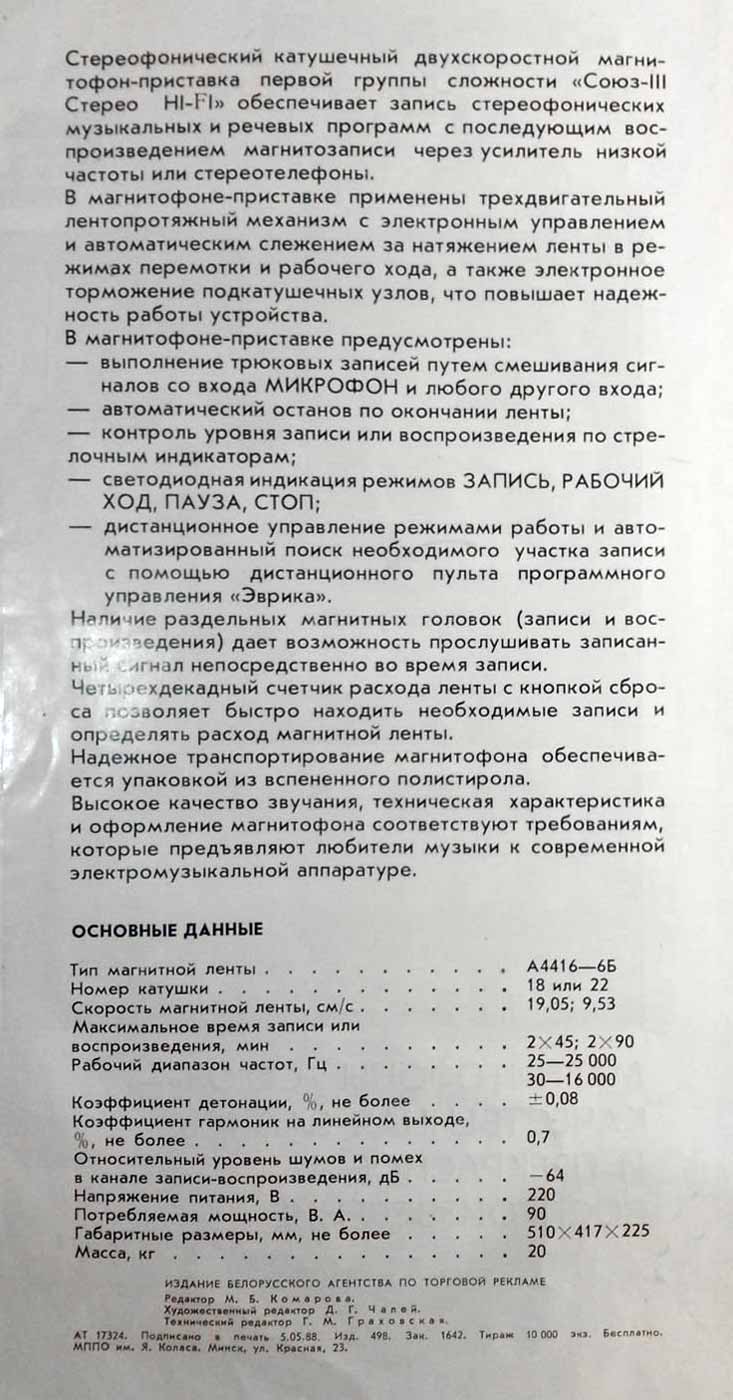 "Союз-111-стерео" с 1987 года выпускалась Брянским ЭМЗ. МП обеспечивает
