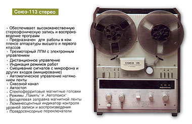 Стереофонический магнитофон-приставка "Союз-113-стерео" подготовлен к выпуску с 1988 года года Брянским Электромеханическим заводом.