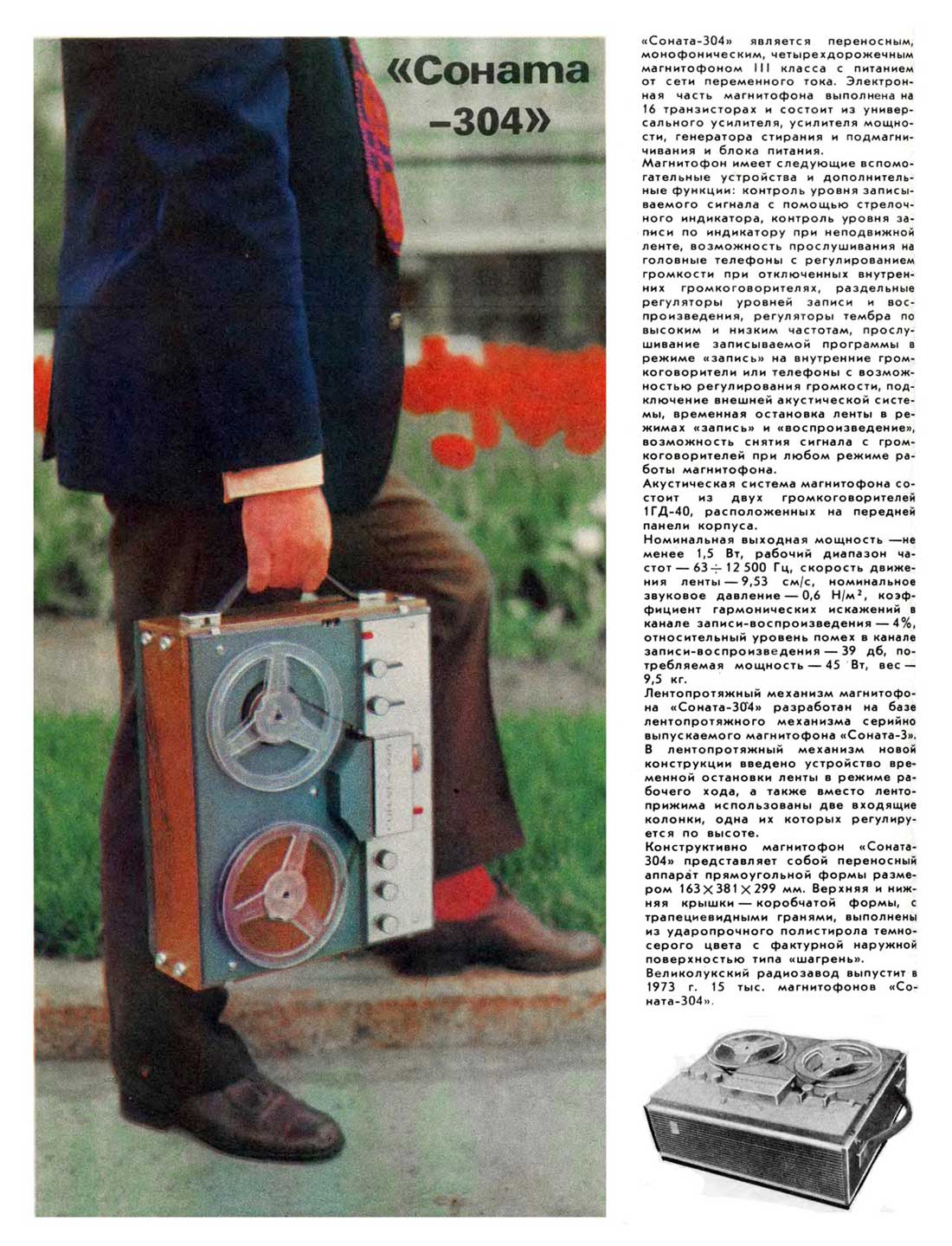 магнитофон "Соната-304" с I-кв 1973 года выпускал Великолукский радиозавод.