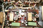 имеются регуляторы тембров, два стрелочных индикатора уровня записи, впоследствии