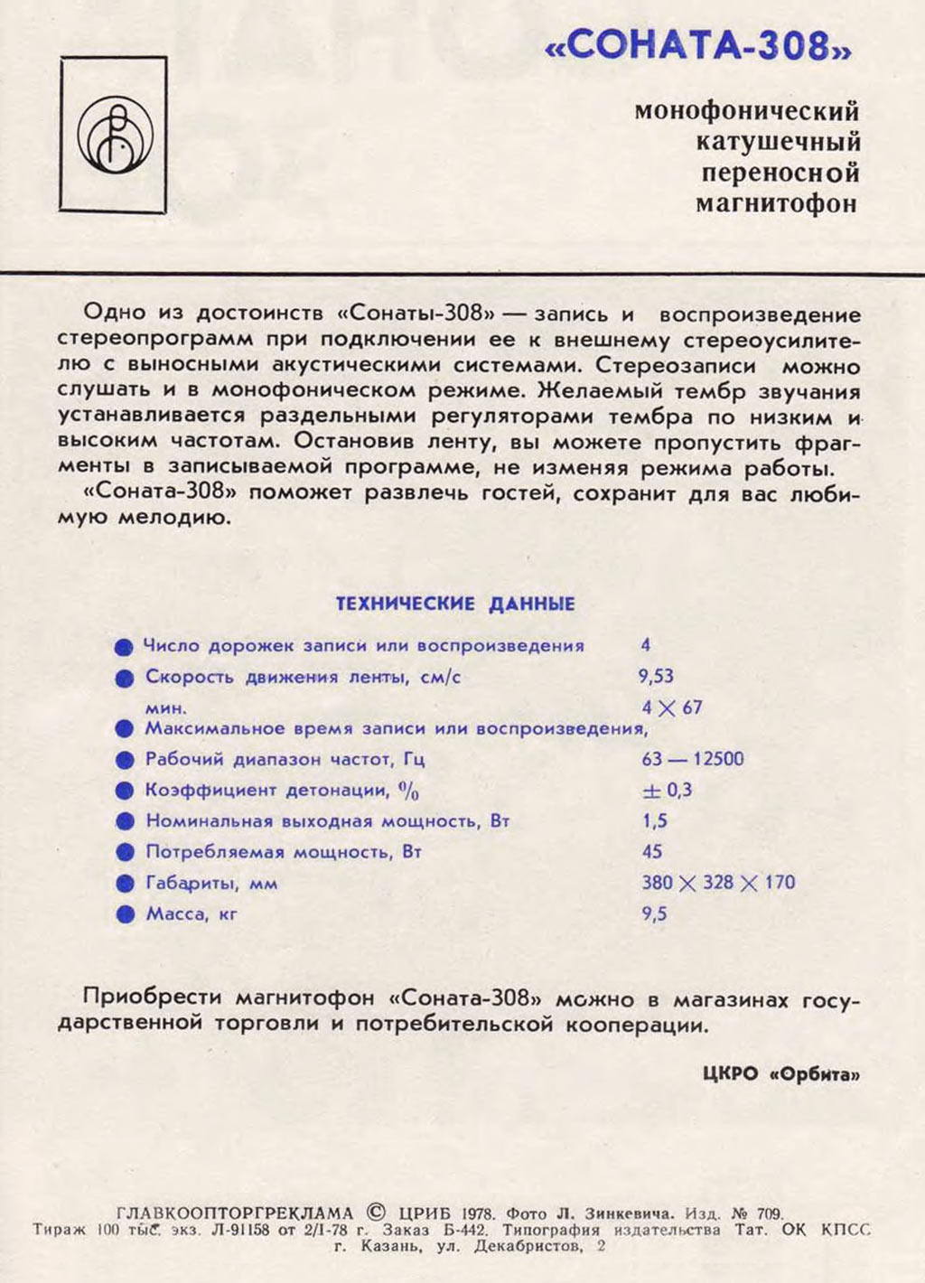 магнитофон "Соната-308" с начала 1977 года выпускало Великолукское ПО "Радиоприбор".