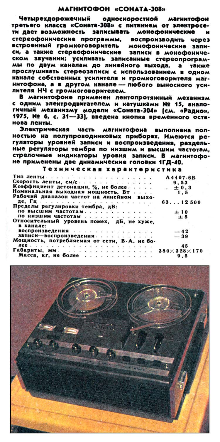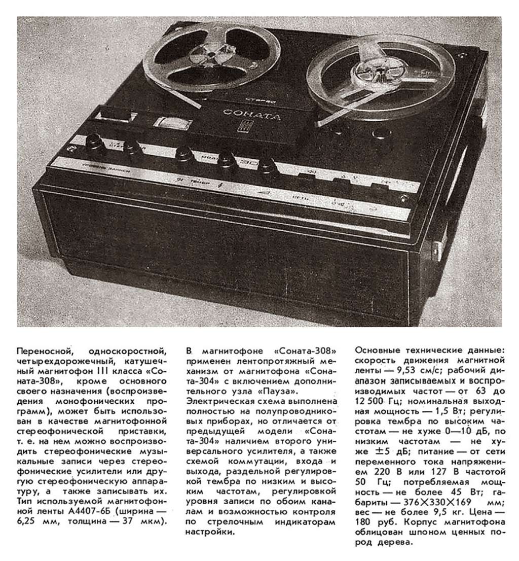 Магнитофон ''Соната-308'' отличается от модели ''Соната-304'' тем,