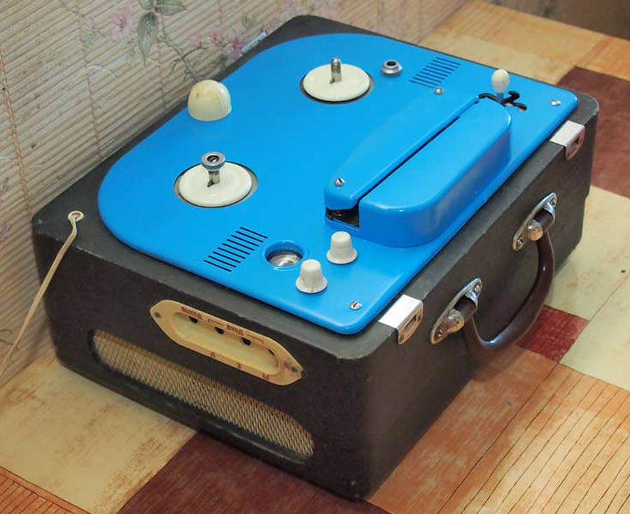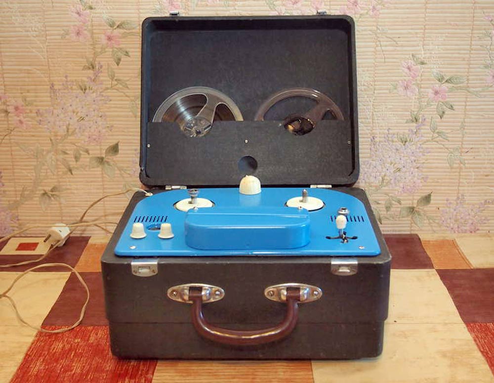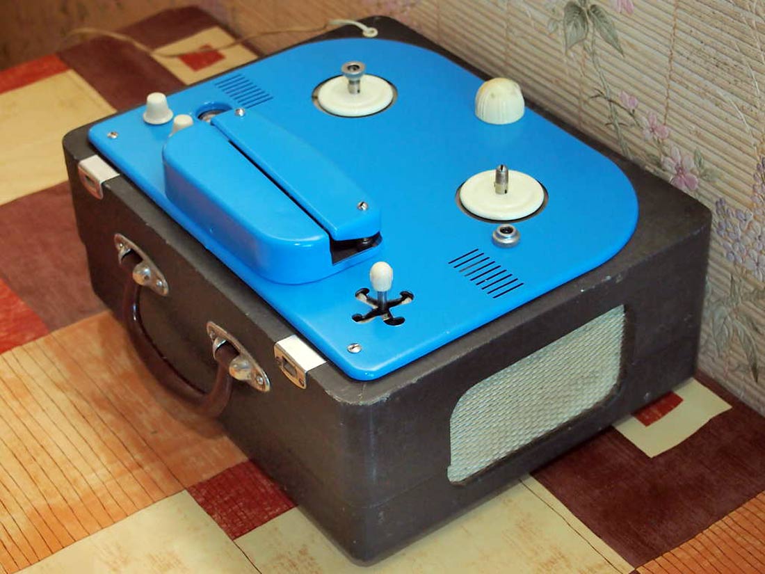 Слева изображение магнитофона из журнала "Техника Молодёжи"