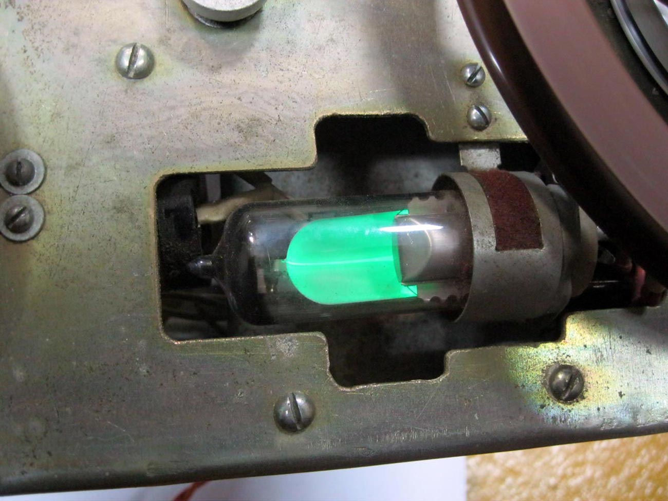 записи планировалось устанавливать круглый, на лампе 6Е5, так как панель