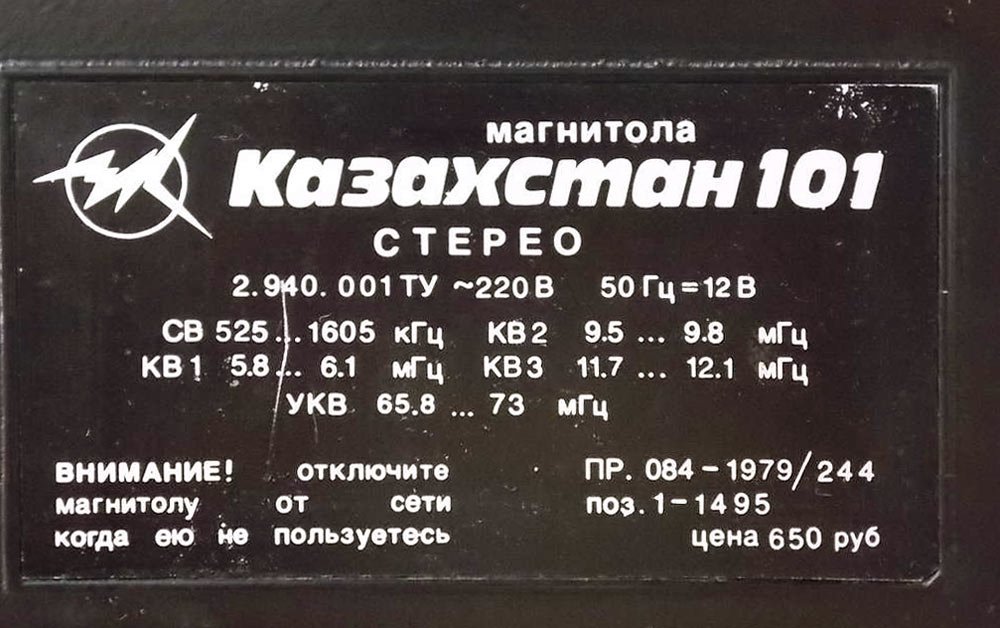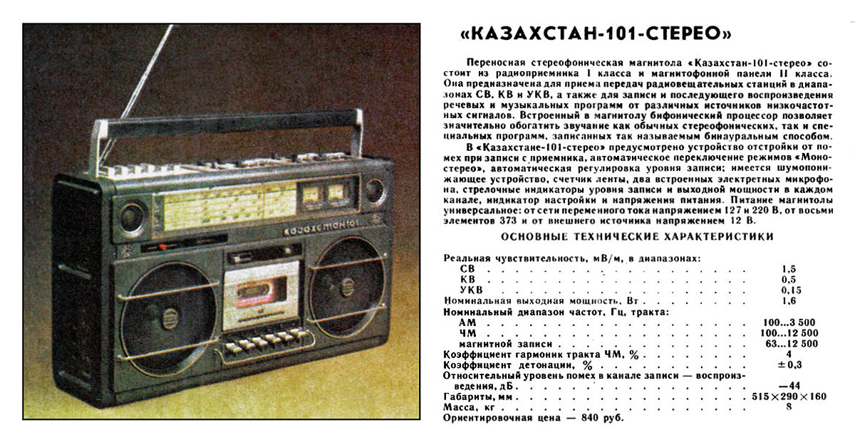 стереофоническая магнитола "Казахстан-101-стерео" с начала 1981 года выпускал