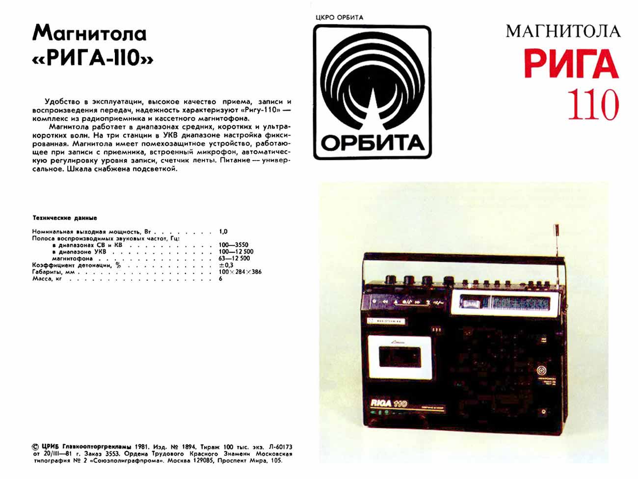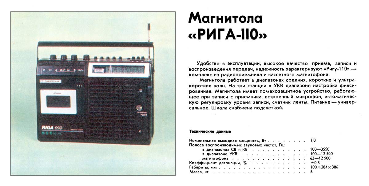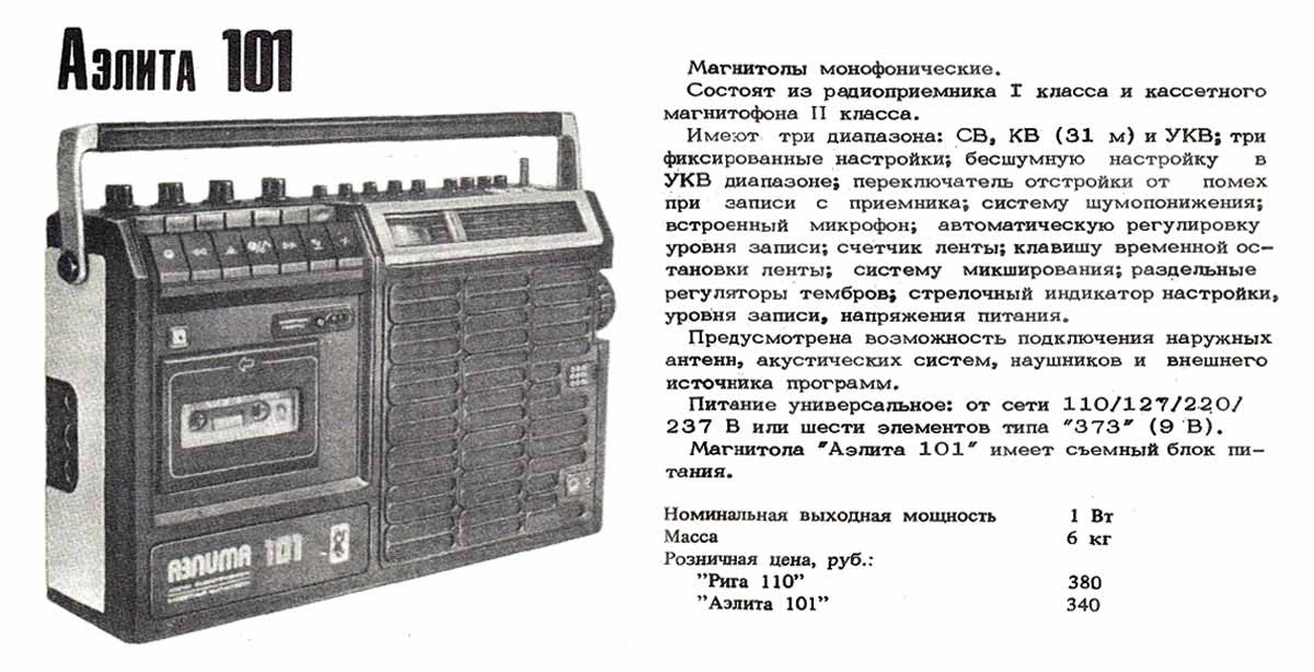 Кассетные магнитолы "Рига-110" и "Aэлита-101"