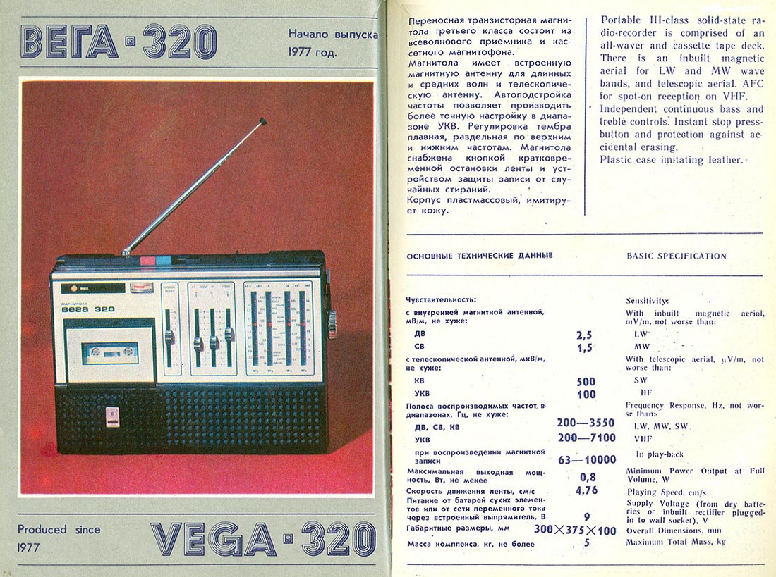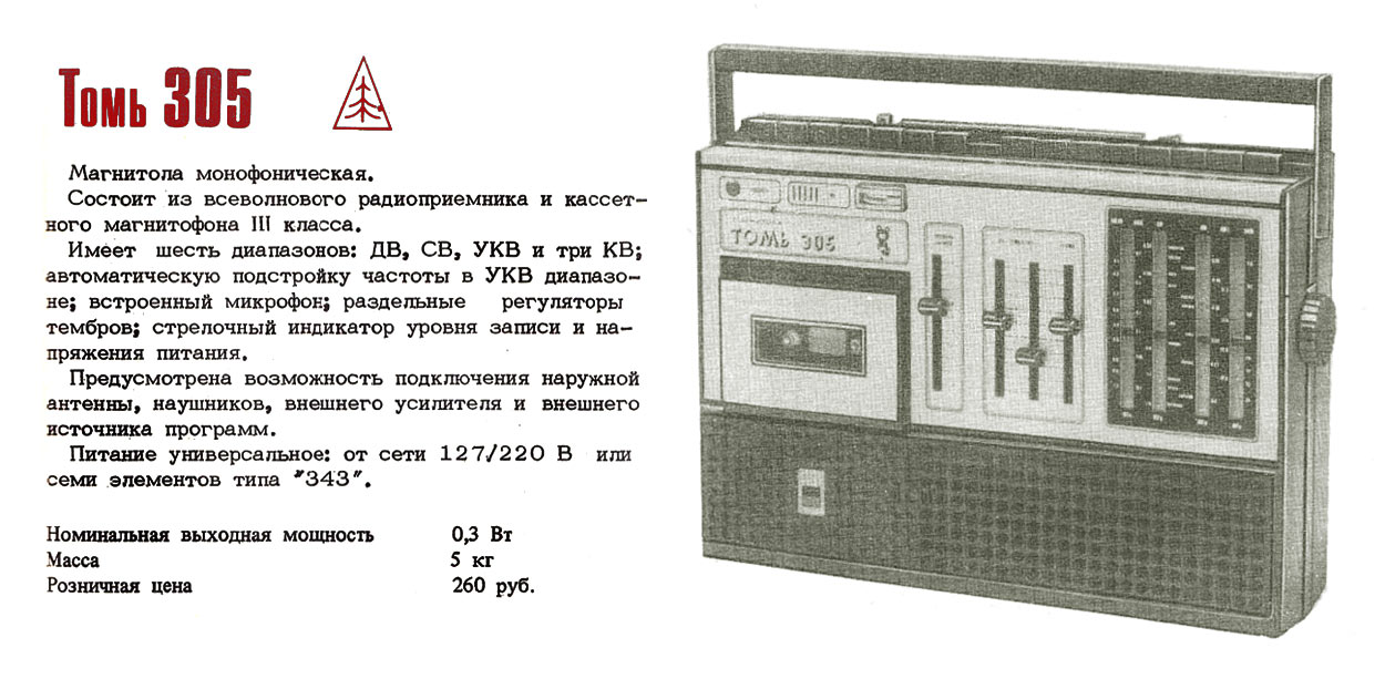магнитолы "Вега-320" и "Томь-305" с 1976 и 1977 года соответственно выпускали