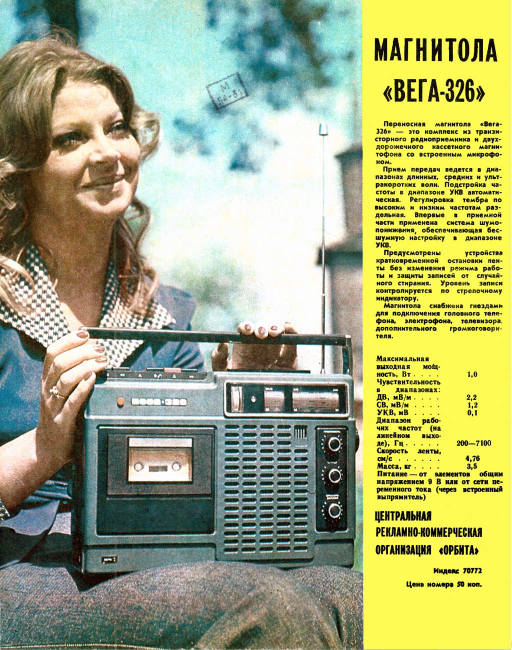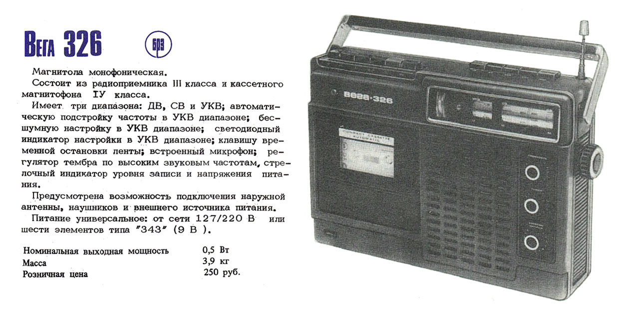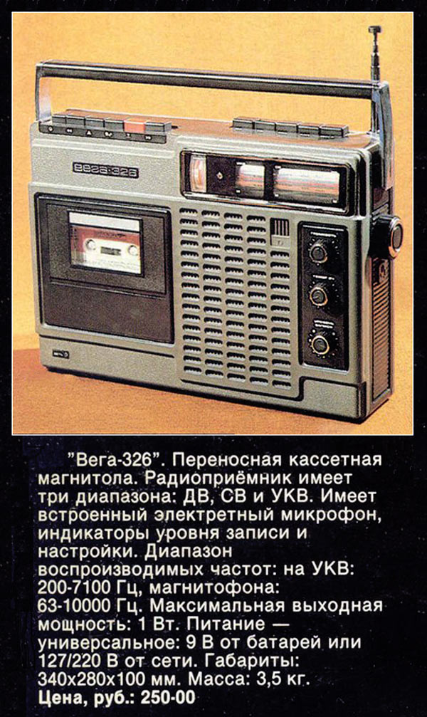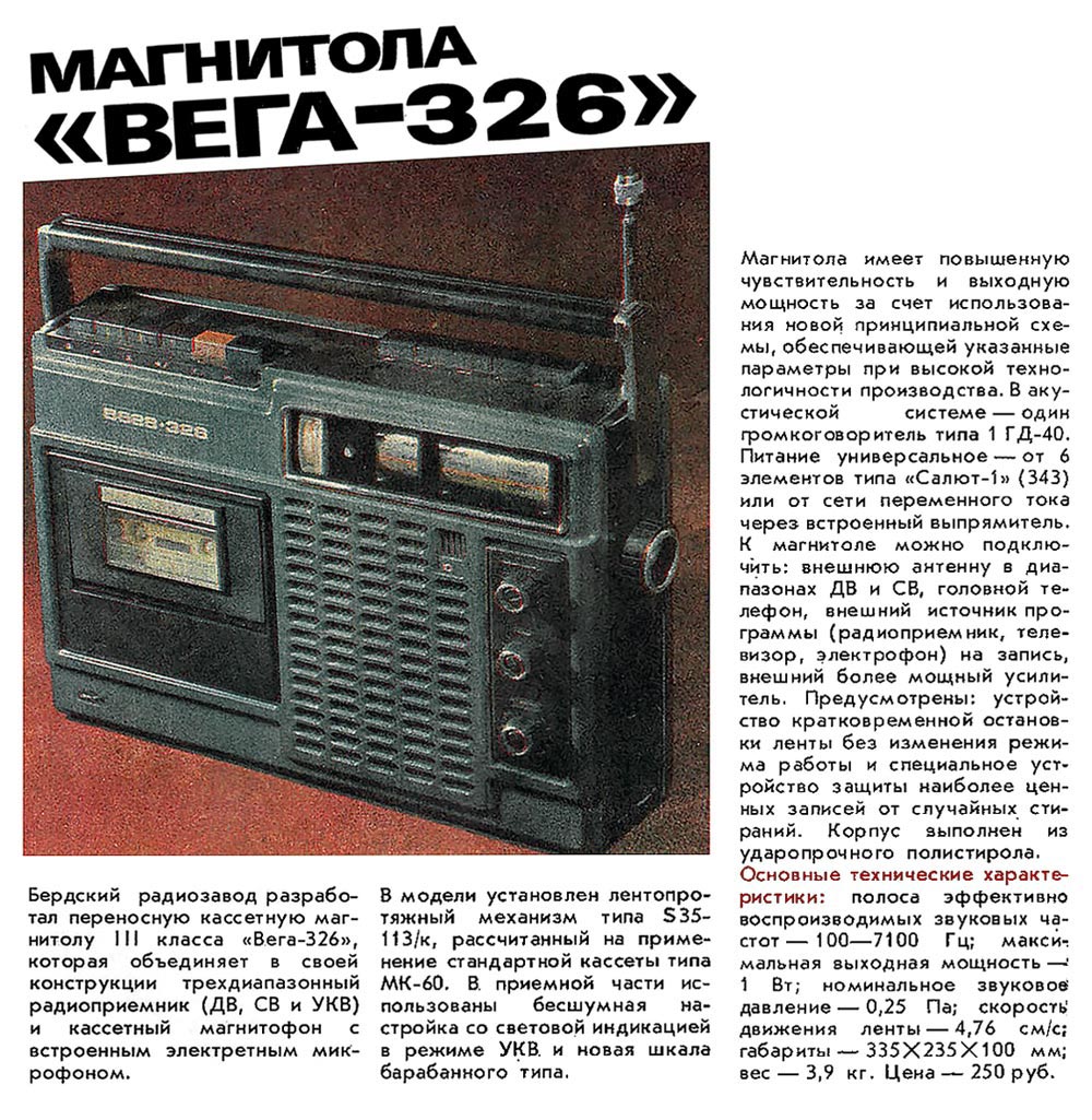 "Вега-326" с 1977 года выпускал Бердский радиозавод. Переносная магнитола