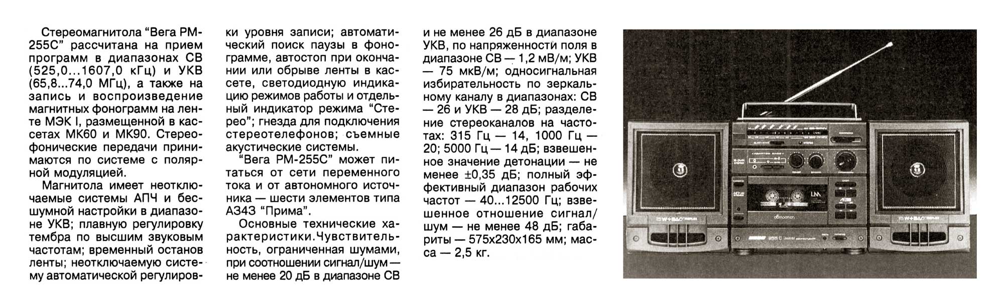 стереофоническая магнитола "Вега РМ-255С" опытно была выпущена в 1995 году