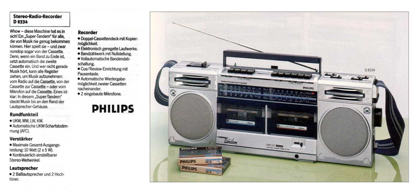 магнитолу "Philips D 8334" (Tandem) с 1984 года выпускала корпорация "Philips",