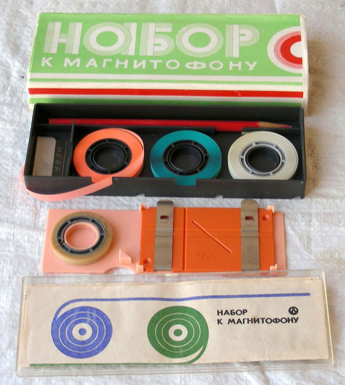 Набор к магнитофону предназначен для подклейки цветных немагнитных, обычно