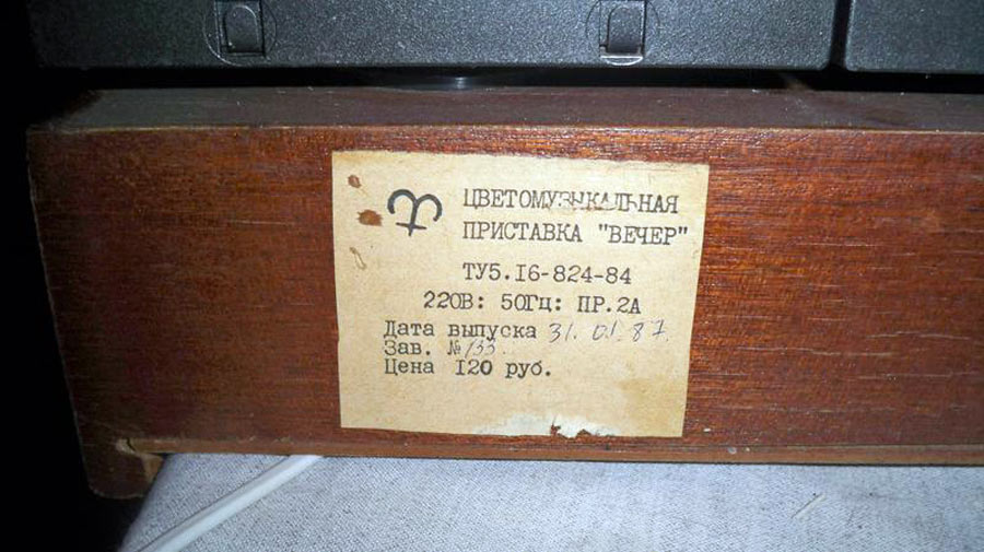 Цветомузыкальная приставка "Вечер" выпускалась с 1988 года Ереванским приборостроительным заводом "Базальт". Предназначена для светодинамического сопровождения музыкальных фонограмм.