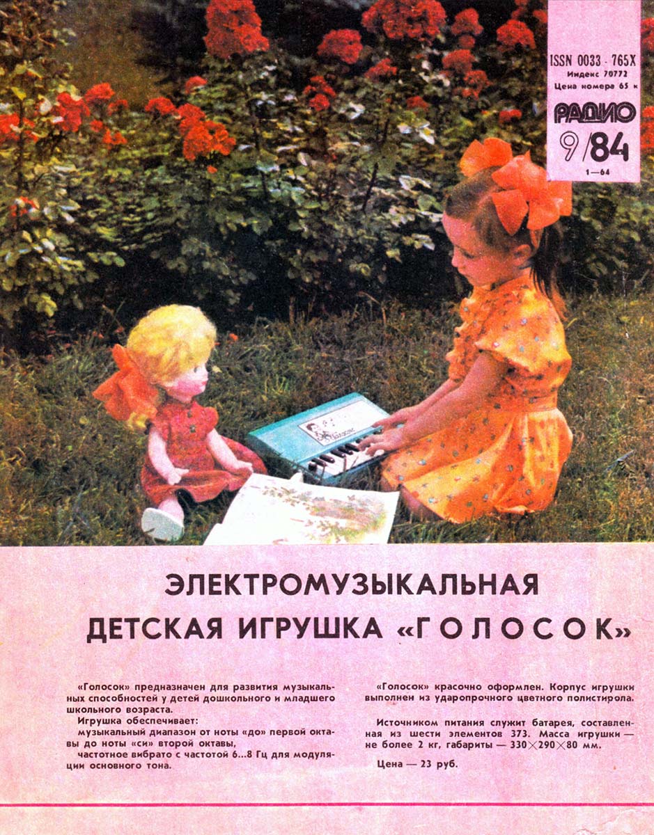 игрушке "Голосок" из журнала Радио № 9 за 1984 год. Фотографии с
