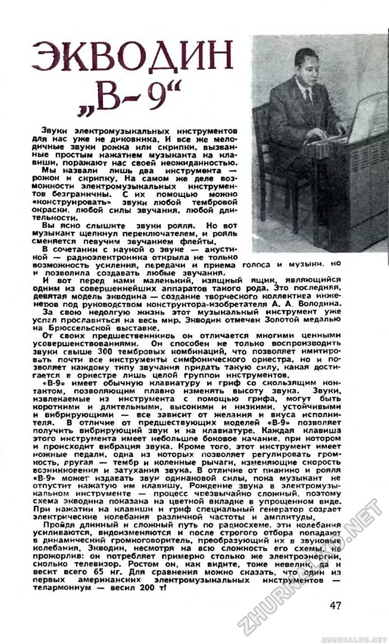 Внизу описание ЭМИ "Экводин В-9" из журнала Юный Техник
