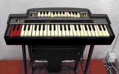 высоту звука. Инструмент также был снабжён двумя ножными педалями (для