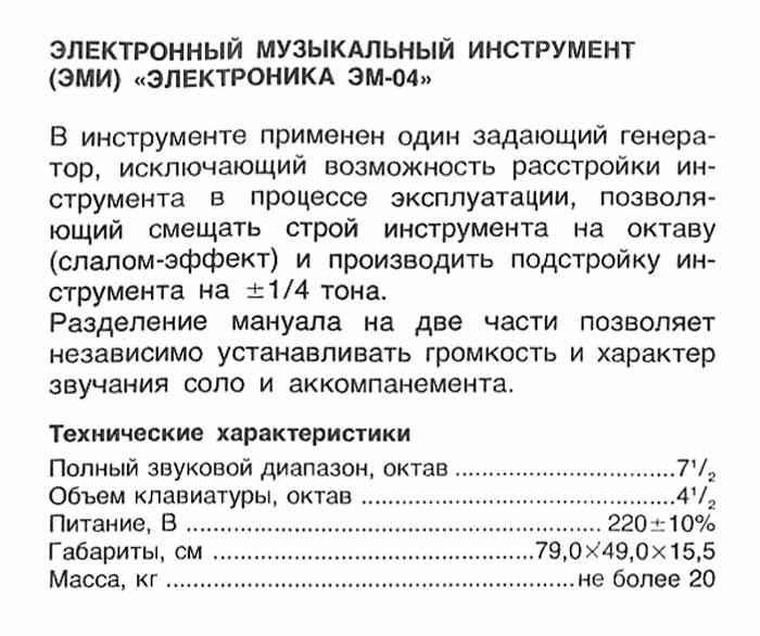 и тембра по соло и аккомпанементу. Задающий генератор ЭМИ позволяет смещать