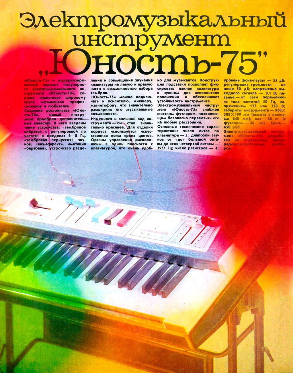 музыки до звучания органа. "Юность-75" позволяет оперативно (во время исполнения)