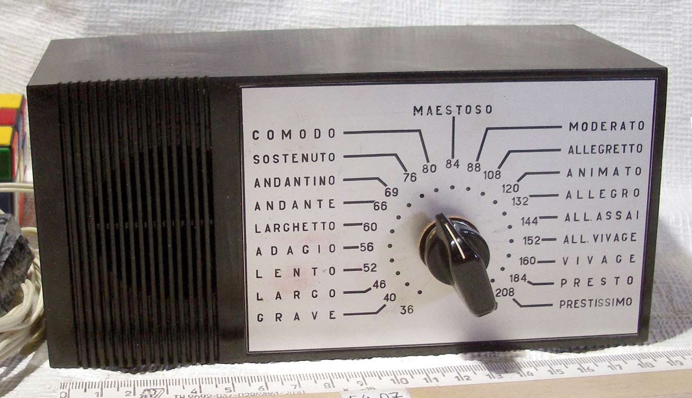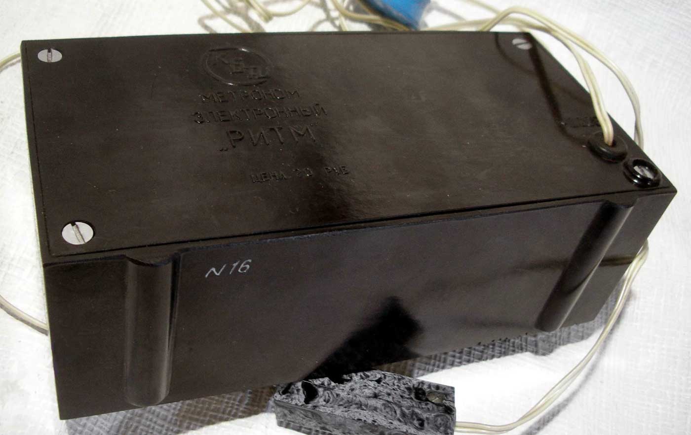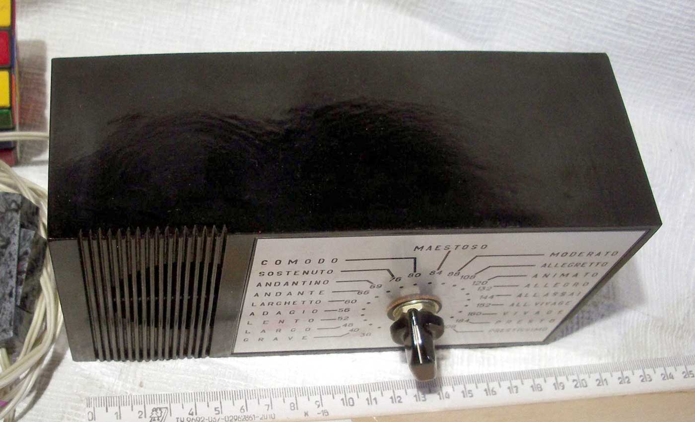 Метроном электронный "Ритм" выпускался с 1973 года неустановленным пока предприятием. Проспект из журнала "Новые товары" № 1 за 1973 год.