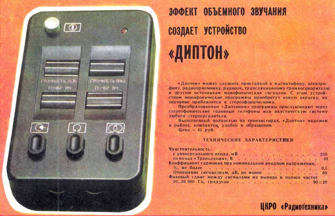 устройство объёмного звучания, с наименованием "Диптон-Р" (Рязань).