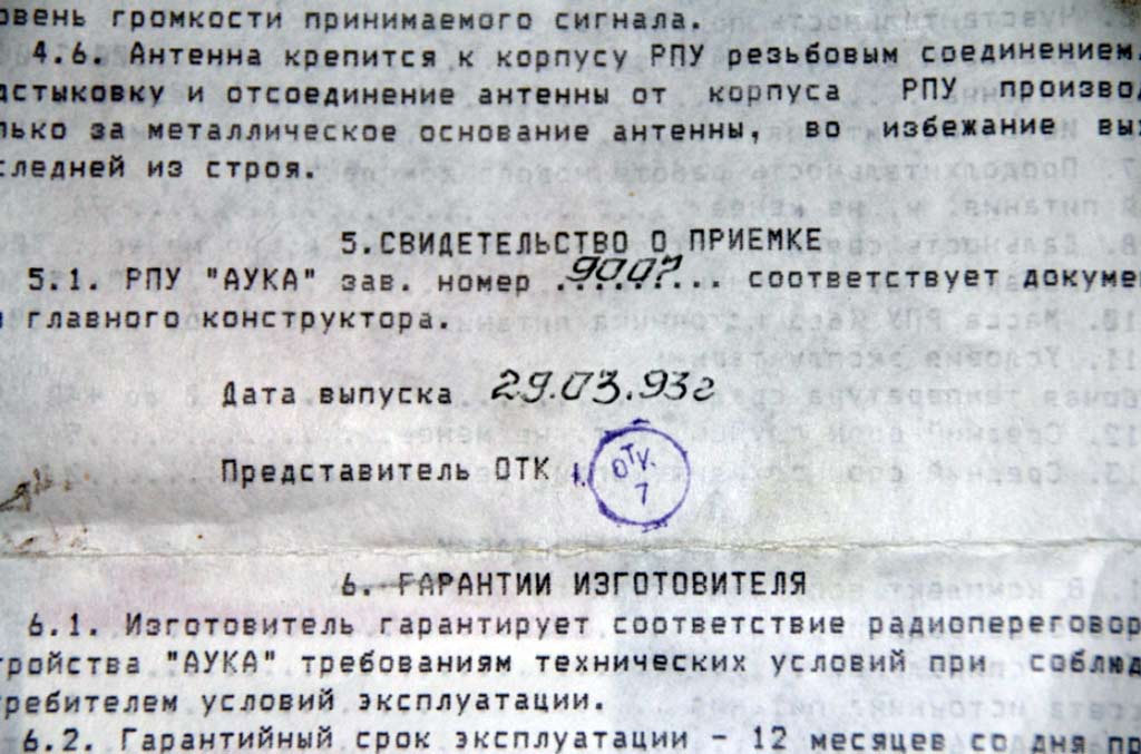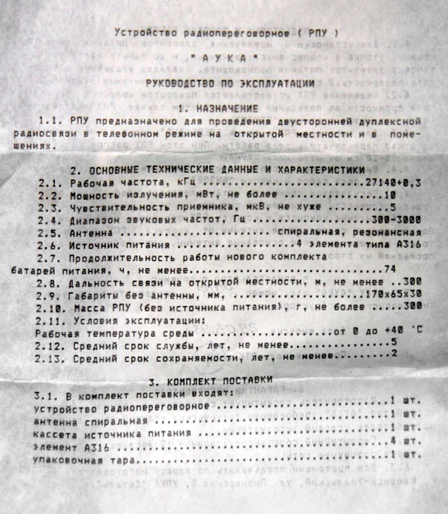 радиопереговорное "Аука" выпускалось с 1993 года. Изготовитель не установлен.