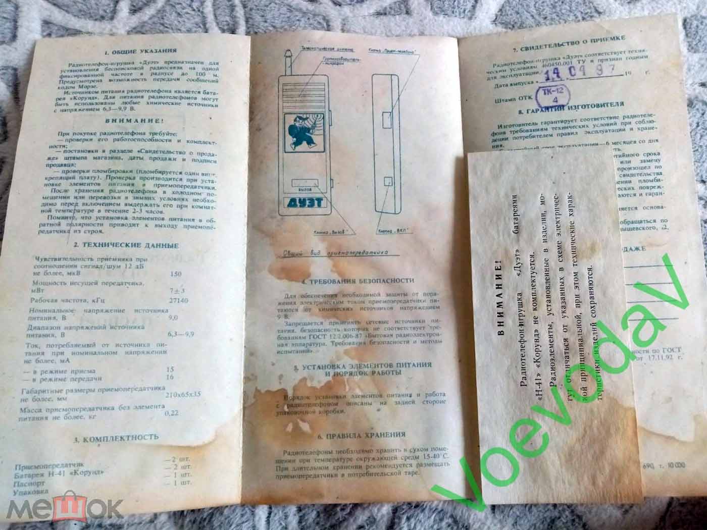 Радио-телефон "ДУЭТ" (приёмо-передатчик) выпускался возможно с 1992 года Омским приборостроительным заводом Козицкого. РТ служит для двухсторонней связи между абонентами в диапазоне 27,14 МГц.
