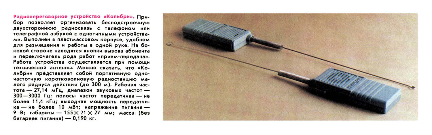 Информация о радиостанции "Колибри" в журнале Радио №