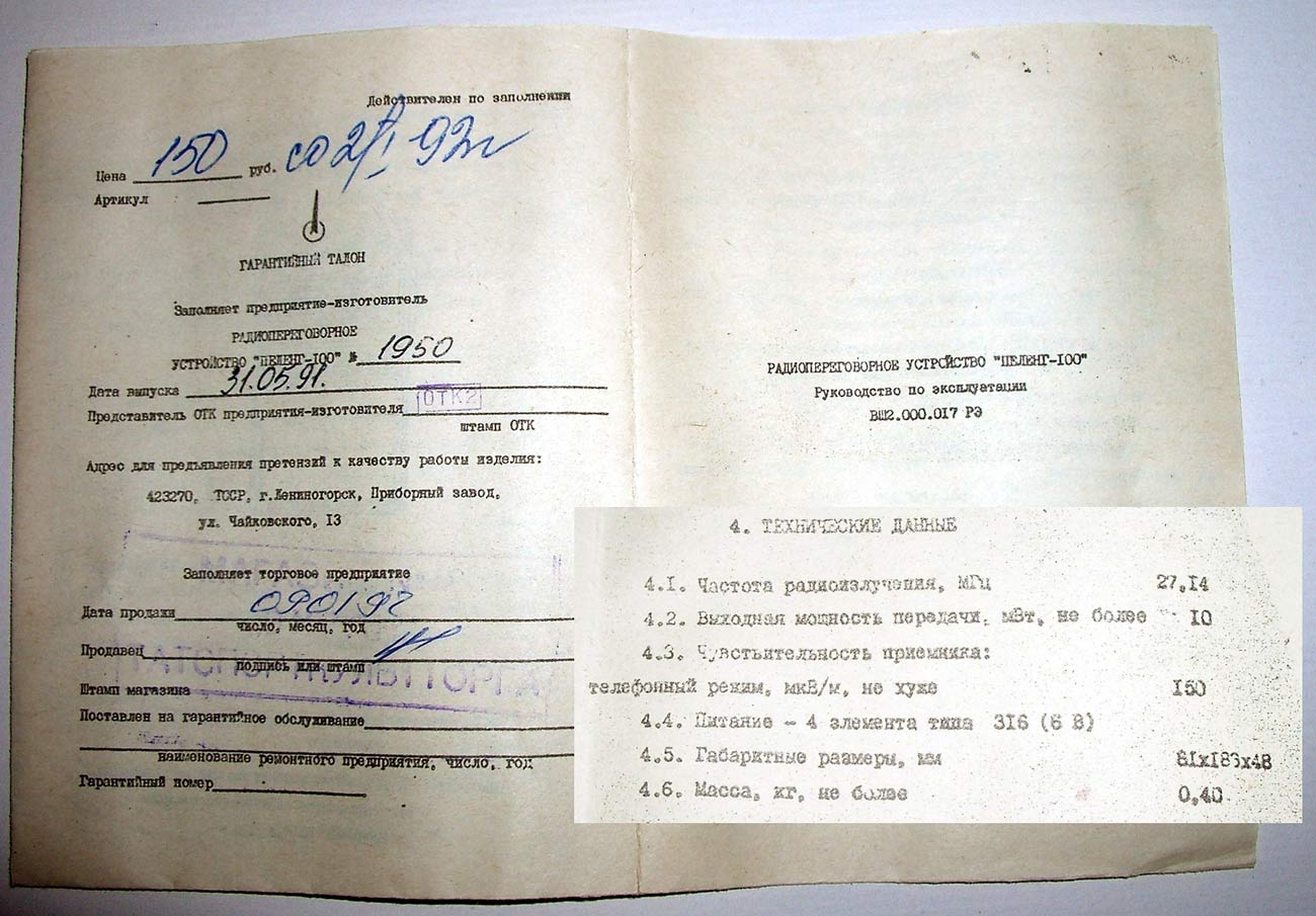 устройство "Пеленг-100" с 1991 года выпускал Лениногорский приборный завод.