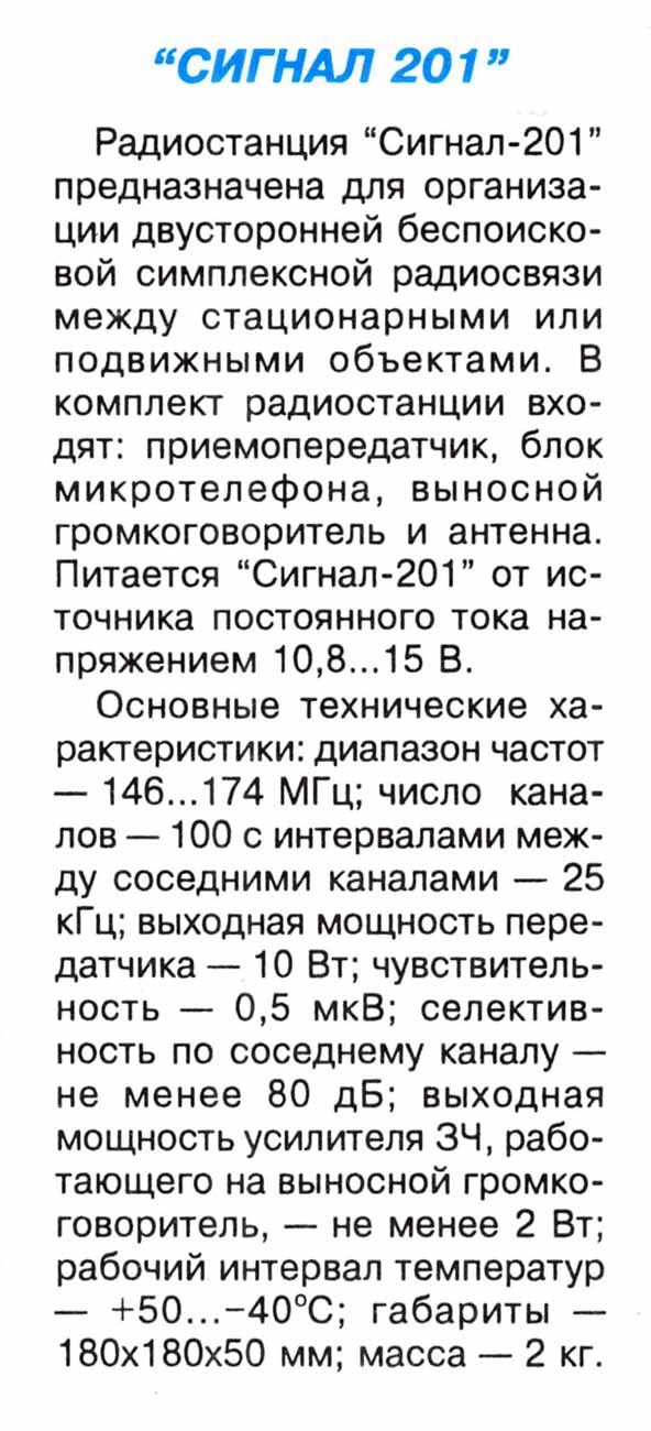 Радиостанцию "Сигнал-201" с 1994 года ограниченно выпускала ООО "Корпорация Новосибирский завод Электросигнал". РС выпускали с индексами А, Б и С.