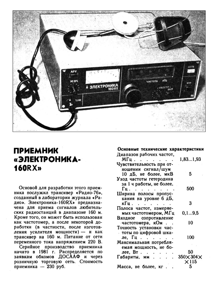 радиоприёмник "Электроника-160 RX" выпускался с 1981 года Ульяновским радиоламповым