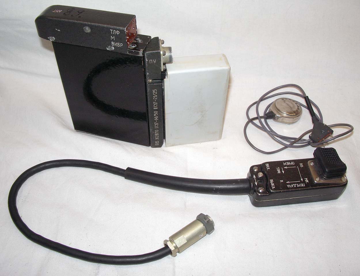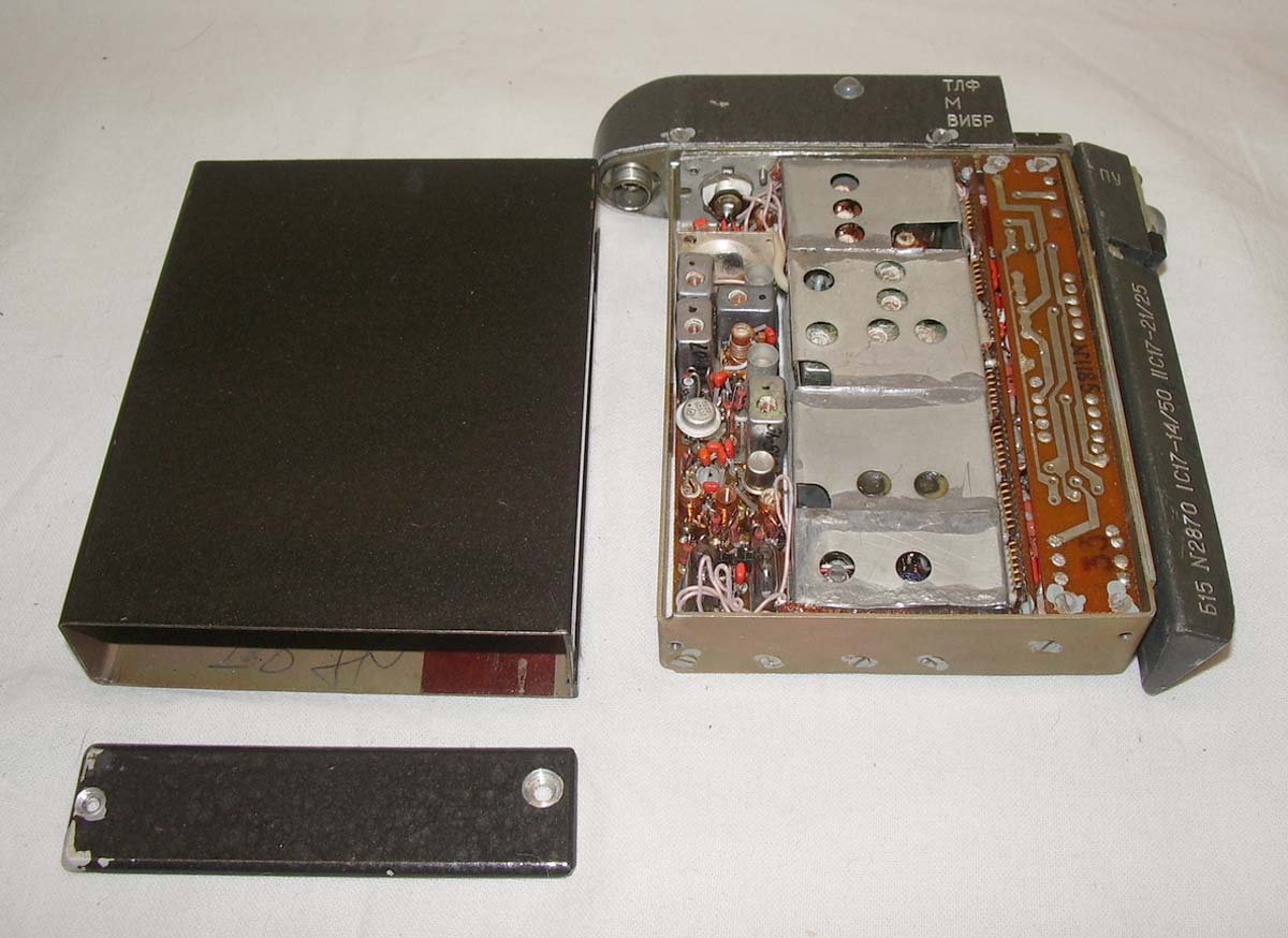 динамик и микрофон, гибкая проволочная антенна, батарея, вибрационный блок.