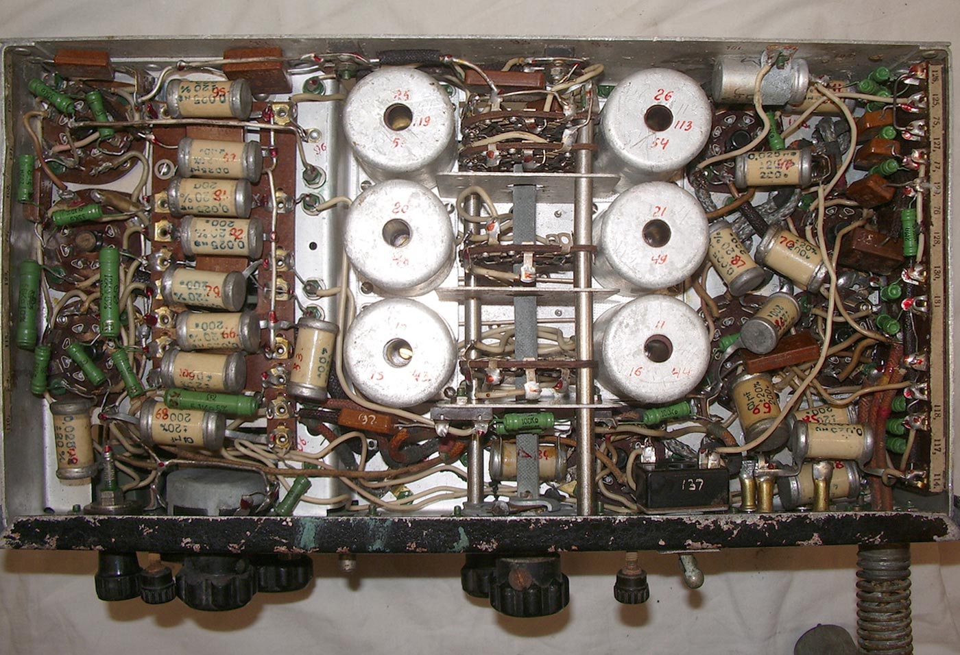 имеет диапазон от 173 КГц до 12 МГц разбитый на пять поддиапазонов. Градуировка