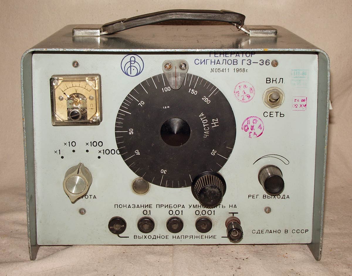 сигналов низкочастотный "Г3-36" выпускался с 1963 года Великолукским радиозаводом.